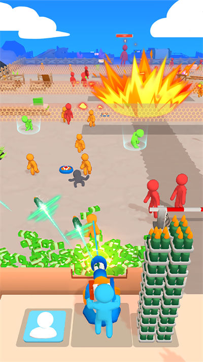 積攢鈔票購(gòu)買并升級(jí)新的武器,拯救平民培養(yǎng)成礦工或是強(qiáng)大士兵,增強(qiáng)輸出。