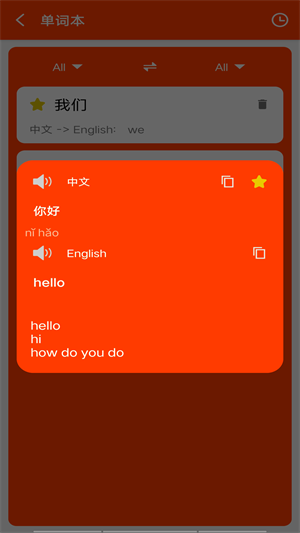 - 收藏你喜歡的單詞或句子,將其保存到你的收藏夾中,或者直接點擊復(fù)制,讓你更快速粘貼到輸入框。