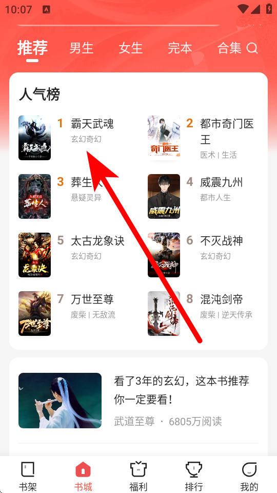 1、在閱友小說書城頁面,點(diǎn)擊人氣榜中的小說,如霸天武魂,進(jìn)入小說閱讀界面。