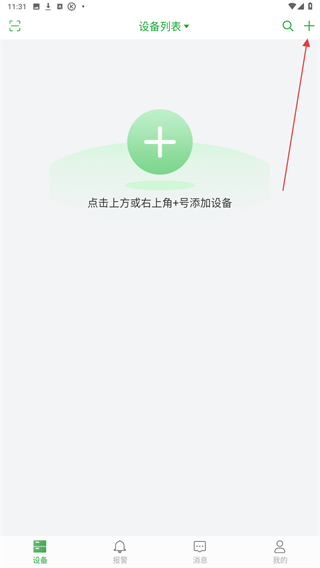 1、打開手機遠(yuǎn)程監(jiān)控APP,在首頁右上角點擊+的功能圖標(biāo)。
