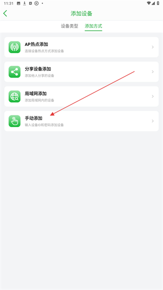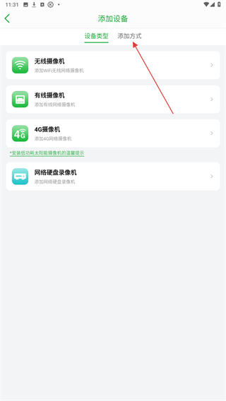 3、在設(shè)備類型的頁面內(nèi),選擇并點擊添加方式的按鈕進(jìn)行切換。