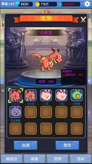 在游戲里面我們不斷的掛機來升級,當我們的等級足夠高的時候就可以去完成關(guān)卡的挑戰(zhàn),來得到不同的資源打造出來強大的武器,增加我們的實力,打敗更多的boss是一個非常簡單的游戲玩法,我們還可以解鎖收集更多的寵物來跟隨我們。