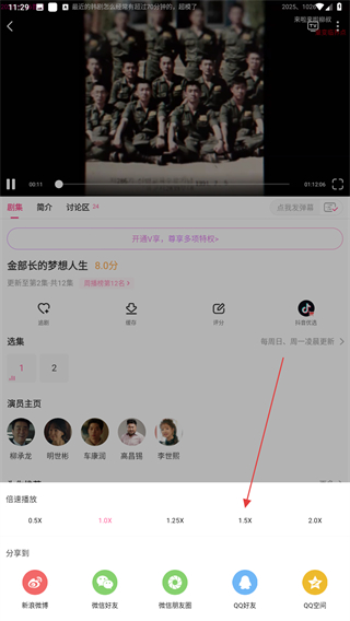 3、在下方彈出的菜單欄中,在倍速播放下點擊倍速的速度。