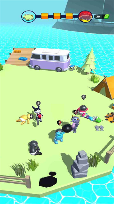 2、新穎獨(dú)特的游戲模式,游戲中玩家如果要打敗場(chǎng)上的對(duì)手,需要靈活運(yùn)用打斗的技巧,在對(duì)手眾多的前期保證自己存活,并打敗最終對(duì)手贏得冠軍;