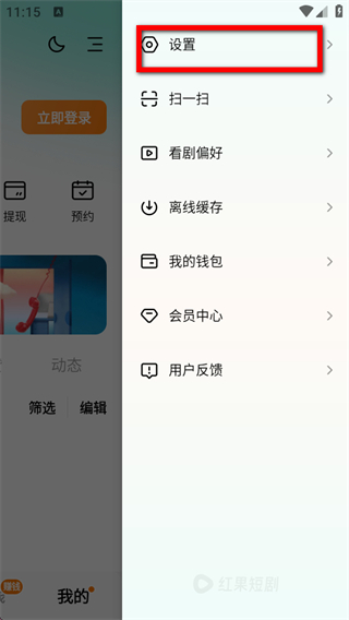 2、在功能菜單中,點(diǎn)擊設(shè)置選項(xiàng),進(jìn)入設(shè)置頁面。