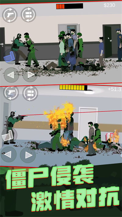 1、簡(jiǎn)單的游戲操作,玩家只需要對(duì)抗僵尸、打敗僵尸就可以完成任務(wù),游戲的模式很簡(jiǎn)單,新人也能很快上手;