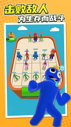2、玩家需要在游戲中合成自己的彩虹怪獸朋友,更快的提升自己的戰(zhàn)斗技能,在戰(zhàn)斗中成功生存,打敗人偶敵人;