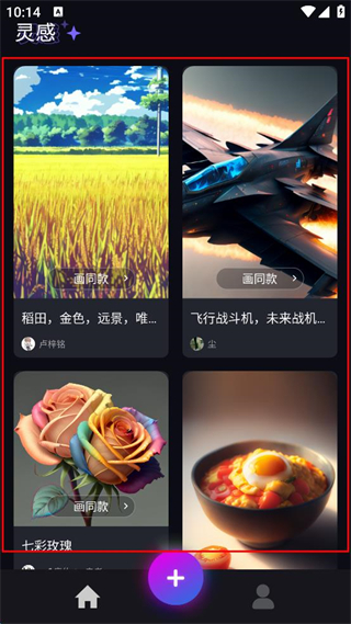 4、在靈感板塊可選擇稻田、戰(zhàn)斗機等作品,點擊“畫同款”使用靈感創(chuàng)作。