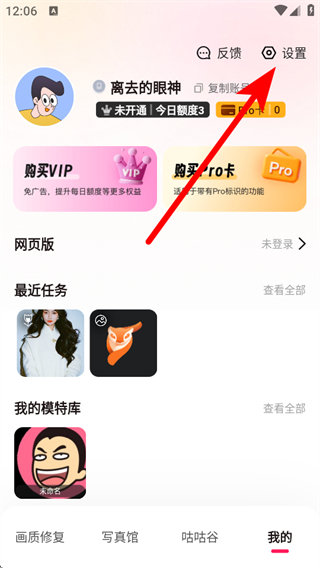 2、在個人頁面中,點擊右上角的設(shè)置圖標(biāo)。