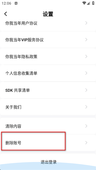 3、進(jìn)入設(shè)置頁面后,點擊刪除賬戶選項。