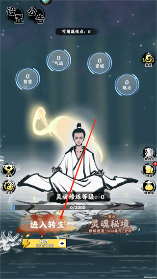 1、進(jìn)入游戲后,選擇“進(jìn)入轉(zhuǎn)生”;