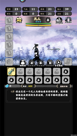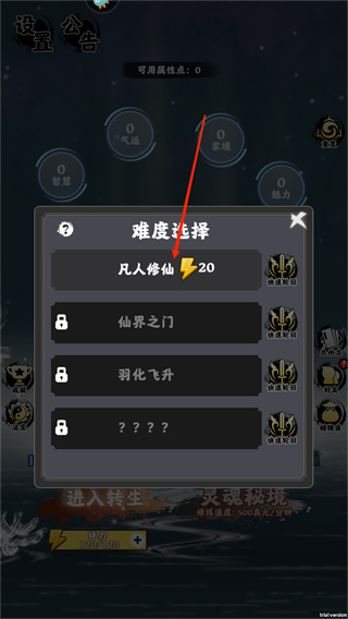 2、這時(shí)候彈出的難度選擇中選擇【凡人修仙】,這也是開局位移能選擇的難度,需要消耗20體力;