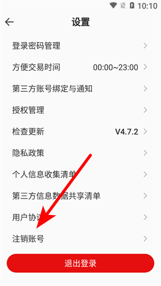 3、在設(shè)置界面,點(diǎn)擊注銷賬號(hào)選項(xiàng),進(jìn)入注銷協(xié)議頁面。