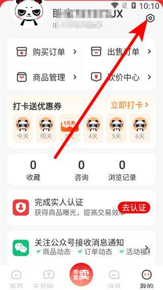 2、在個(gè)人中心頁面,點(diǎn)擊右上角設(shè)置圖標(biāo),進(jìn)入設(shè)置界面。