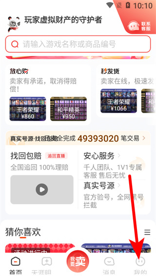 1、頁面中將會(huì)看到有超多的游戲賬號(hào)可以交易,如果你要賬號(hào)交易點(diǎn)擊中間這里進(jìn)入交易頁面;
