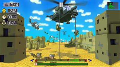 游戲在戰(zhàn)俘營營救人質(zhì),在沙漠、人類、礦井、沼澤和海灣的軍事攻擊中戰(zhàn)斗,玩家可以邀請(qǐng)他們的游戲朋友組隊(duì)玩游戲,內(nèi)置的語音系統(tǒng)可以交流,玩家?guī)ьI(lǐng)你的像素團(tuán)隊(duì),收集大量的武器物品。