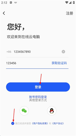 4、勾選協(xié)議,點擊登錄按鈕,完成登錄操作。