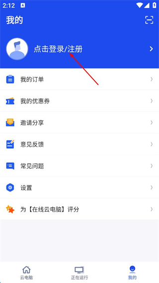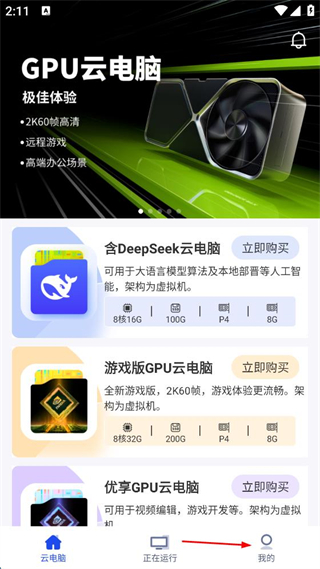 1、進入軟件云電腦頁面,點擊右下角我的。