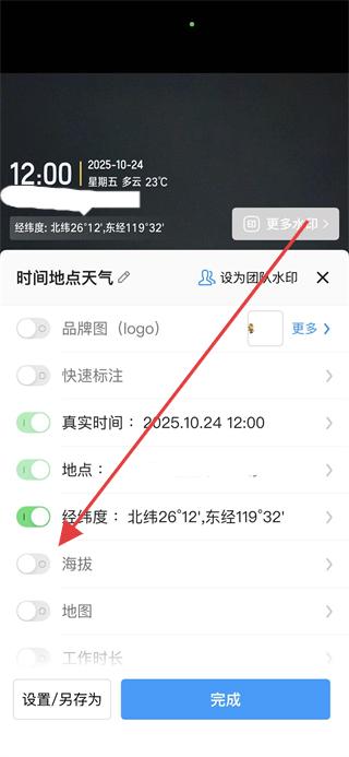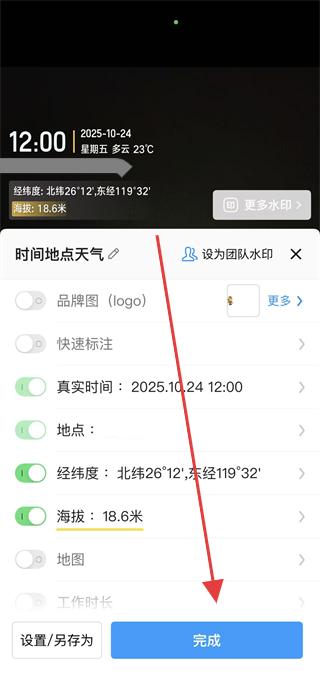4.格式選擇完成后,點(diǎn)擊完成按鈕,即可成功添加海拔信息水印。