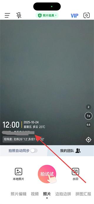 3、進(jìn)入照片拍攝界面,底部彈出提示授權(quán)位置后,按照指引完成位置授權(quán),直接進(jìn)行拍攝或其他操作。