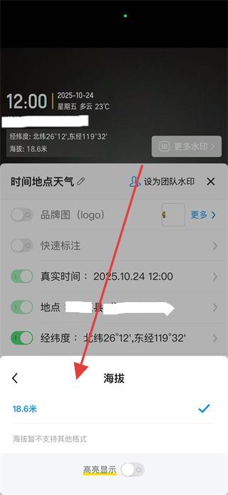3.進(jìn)入海拔設(shè)置界面,選擇合適的海拔顯示格式如“18.6米”。