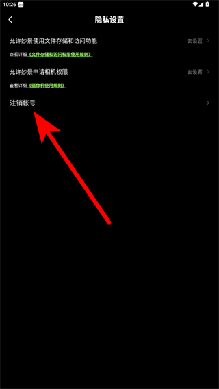 4、在隱私設(shè)置頁面中,點(diǎn)擊注銷帳號(hào)選項(xiàng),按照提示完成賬號(hào)注銷操作即可。