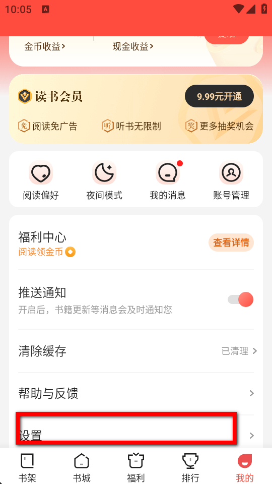 2、在個(gè)人中心界面,點(diǎn)擊設(shè)置選項(xiàng),進(jìn)入設(shè)置頁面。