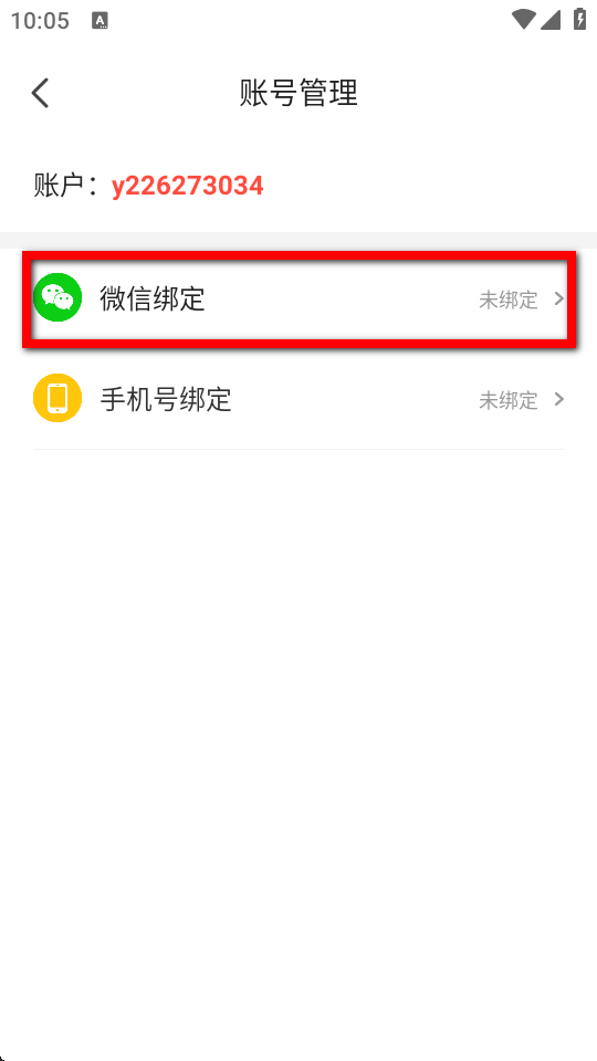 4、在賬號(hào)管理界面,點(diǎn)擊微信綁定選項(xiàng),即可進(jìn)行微信綁定操作。