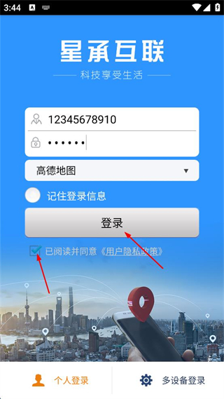 4、勾選已閱讀并同意用戶隱私政策,點擊登錄按鈕。