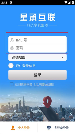 1、點擊個人登錄,切換至IMEI號登錄界面。