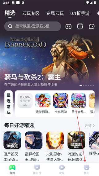 1、軟件上面能看到每天常常玩的游戲內(nèi)容,在首頁上面可以直接點擊進入。
