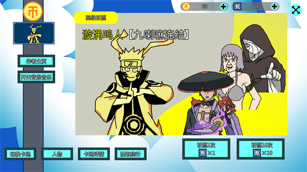 2、兩個卡池,一個是梗角色卡池,還有一個是火影忍者卡池,直接點擊切換就可以切換抽獎的卡池;
