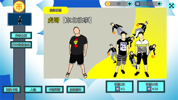萬物抽卡模擬器是B站UP主【HF紅凡】自制的一款非常搞笑的抽卡模擬器,在其中將會帶來非常渣的畫質(zhì),但是會帶來非常多晚上的梗人物角色,我們可以像原神等游戲抽卡模擬體驗去進行抽卡,會抽取到各種梗角色,比如哥哥、虎哥、唐老鴨、殺馬特團長等一系列網(wǎng)絡(luò)熱門梗角色,每一個梗角色都是風(fēng)靡一時給我們留下了很多印象的,比如說虎哥的那個夏天,雖然說已經(jīng)回不去,但是新的夏天就會陸續(xù)復(fù)蘇,新一代的梗也在不斷的冒出來,每個角色不同的形態(tài)也會有不同的等級評價,從一星到五星,每次都會抽取到不同的形態(tài),我們可以選擇單抽也可以懸著十連抽,抽中好東西的概率還是比較大的,主打的就是玩梗,讓我們可以體驗到抽獎的樂趣, 每個不同的姿勢都會做成一個抽獎結(jié)果,還配有專屬的文字語錄,讓我們可以重溫當年的搞笑盛況,也會介紹當年梗的大概內(nèi)容,當然抽獎也會重復(fù)的結(jié)果,不過這并不影響我們體驗游戲。