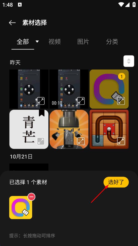 3、素材選擇完成后,點(diǎn)擊選好了按鈕。