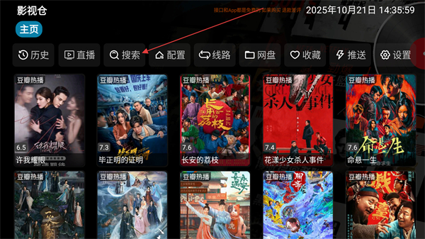 1、啟動(dòng)影視倉(cāng)APP,進(jìn)入主頁(yè)內(nèi)點(diǎn)擊搜索的圖標(biāo)。