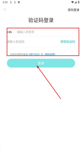 3、輸入手機(jī)號(hào)碼,填入驗(yàn)證碼,點(diǎn)擊登錄,完成賬號(hào)注冊(cè)。