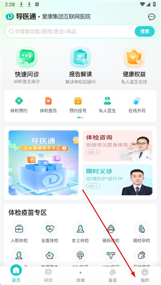 1、打開導(dǎo)醫(yī)通APP,點(diǎn)擊導(dǎo)航欄中的我的。