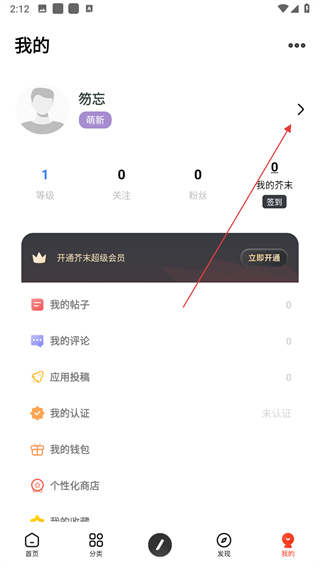 2、在我的頁(yè)面,點(diǎn)擊頭像右側(cè)的箭頭按鈕。