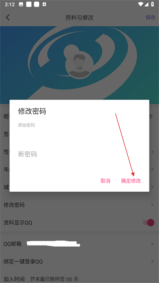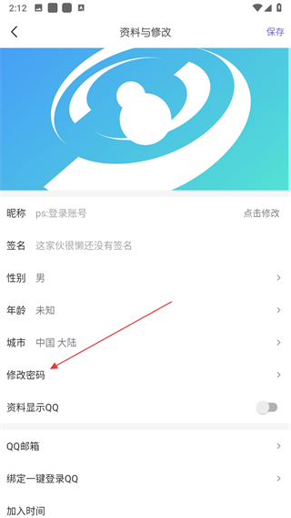 3、在資料與修改頁(yè)面,點(diǎn)擊修改密碼選項(xiàng)。