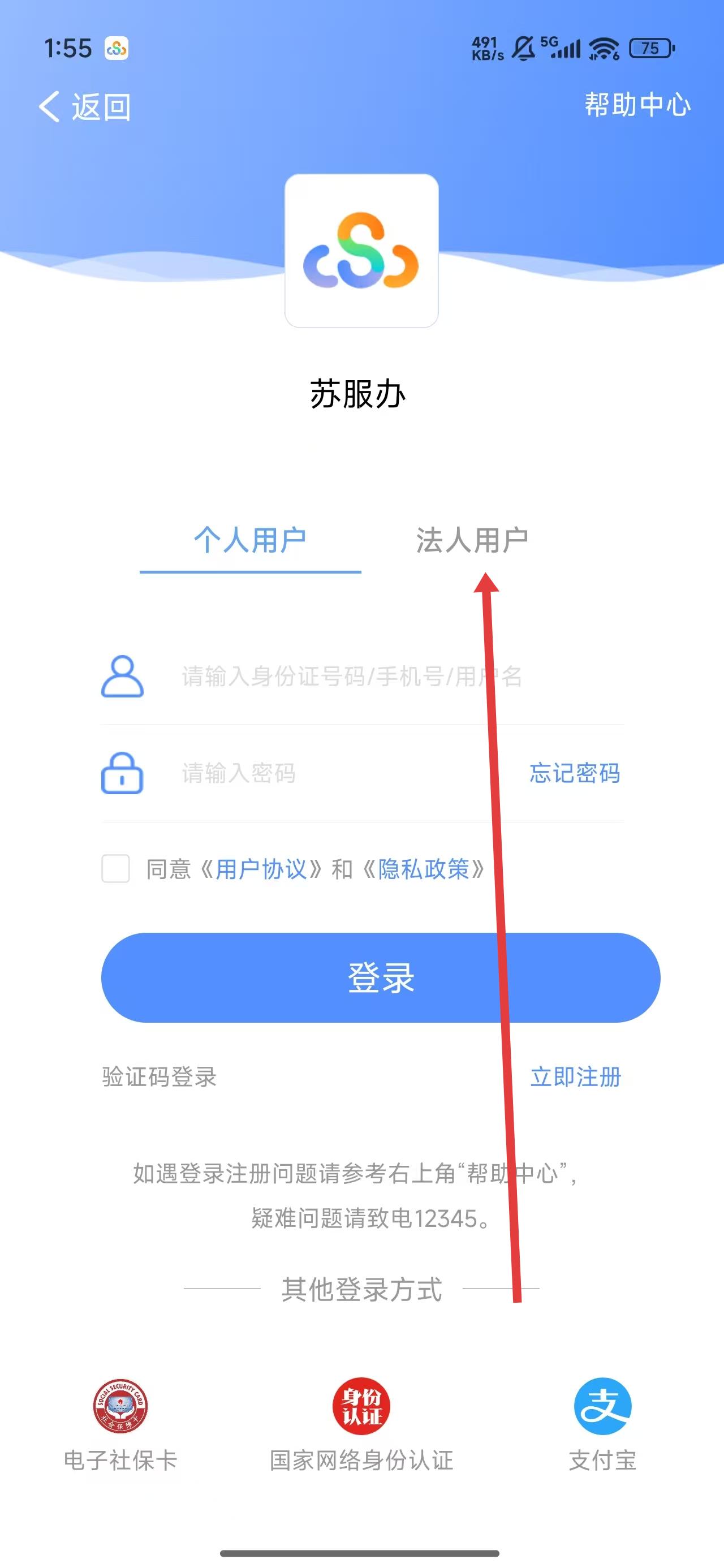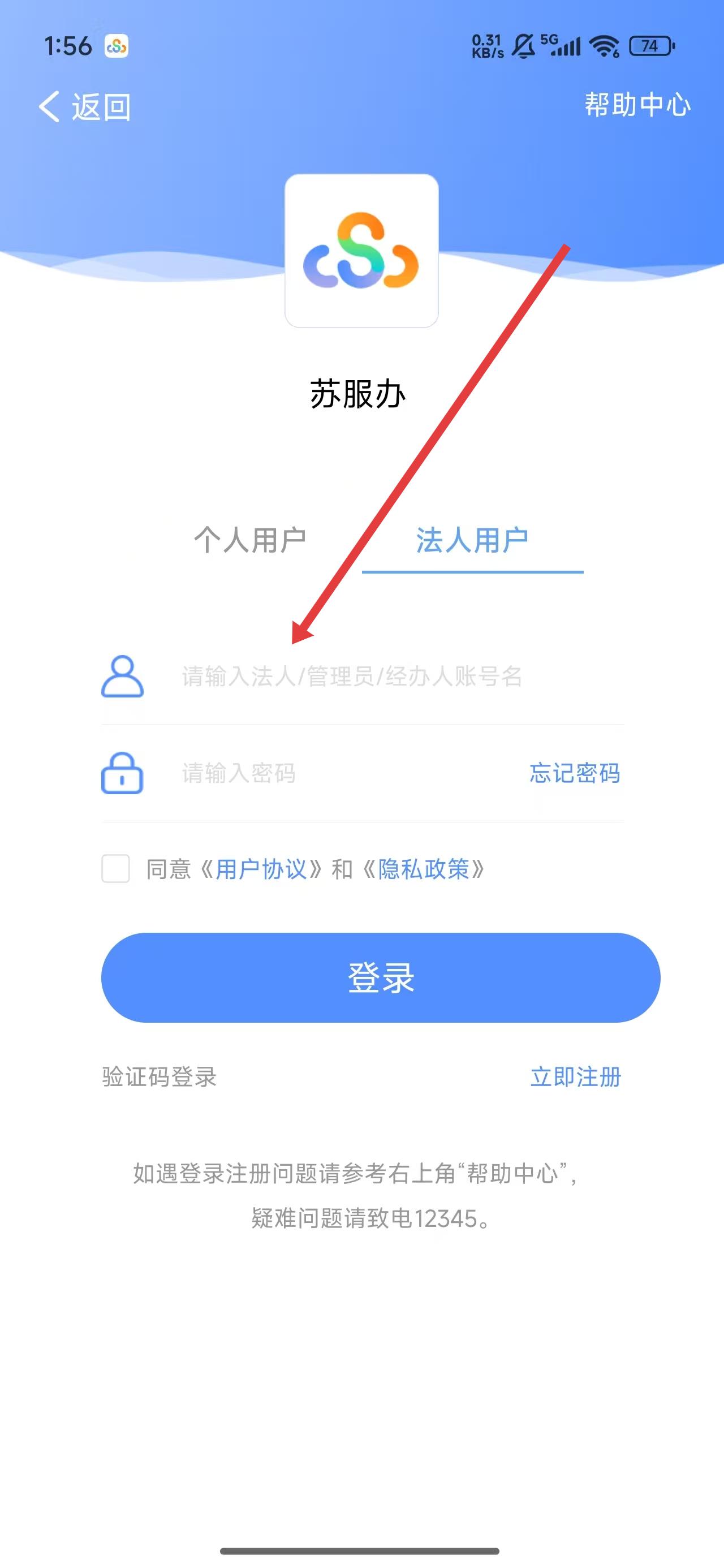 3、在跳轉(zhuǎn)到登錄頁(yè)面后,可以點(diǎn)擊法人用戶(hù)按鈕,切換登錄身份。