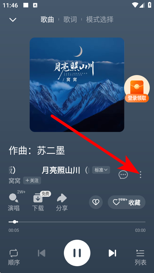 3、在歌曲播放界面,點擊右側(cè)三點更多選項。