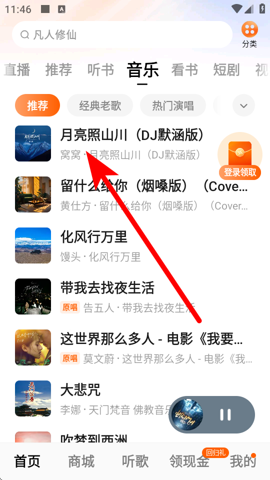 1、在番暢聽首頁,點擊音樂選項,進入音樂頁面。