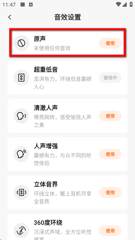 4、點擊原聲右側(cè)的使用按鈕,即可關(guān)閉背景音,切換為原聲播放。