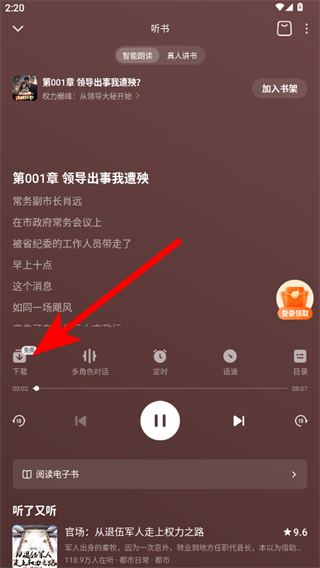 3、在聽書播放頁面,點擊下載按鈕,即可開始下載該小說。