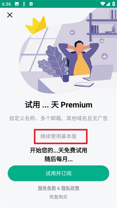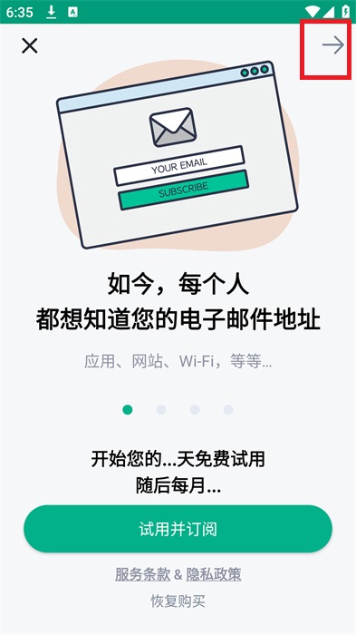 1、打開軟件在軟件的首頁點(diǎn)擊右上角的【→】多點(diǎn)幾次到達(dá)進(jìn)入的界面,不需要點(diǎn)擊【試用并訂閱】,點(diǎn)擊過后會(huì)需要開會(huì)員;