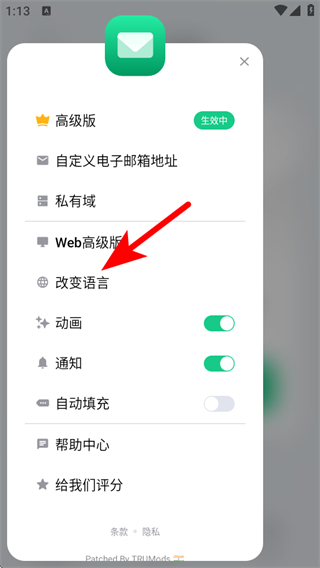 2、在功能選項(xiàng)列表中,點(diǎn)擊改變語言,進(jìn)入語言選擇的頁面。