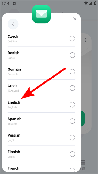 3、在語言選擇的頁面,我們選擇需要更改的目標(biāo)語言如English。