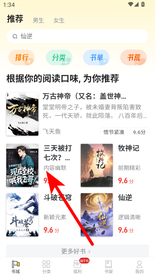 1、打開(kāi)飯團(tuán)追書(shū)APP,在首頁(yè)找到想要閱讀的小說(shuō)并點(diǎn)擊進(jìn)入。