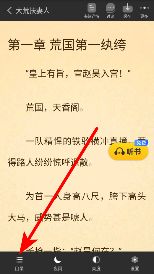 3、在閱讀界面中,點(diǎn)擊屏幕底部的目錄圖標(biāo)。