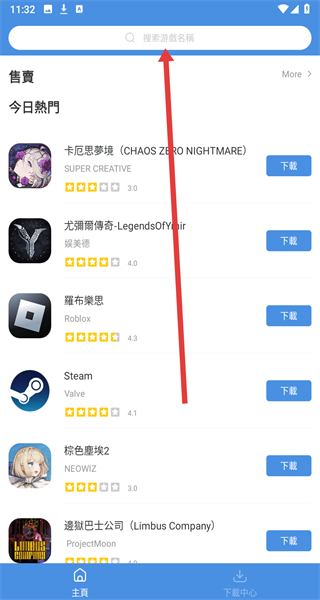 2、在進(jìn)入到搜索頁(yè)面中時(shí),可以點(diǎn)擊上方輸入框,輸入要搜索的游戲名稱(chēng)。